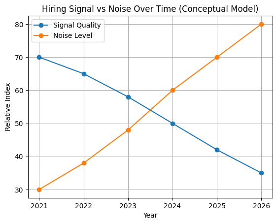 What AI has done is dramatically increase the noise in the system. Candidates can now generate signals that appear to demonstrate capability but are artifacts of software assistance. At the same time, employers have automated screening systems that amplify superficial indicators such as keywords or linguistic patterns.