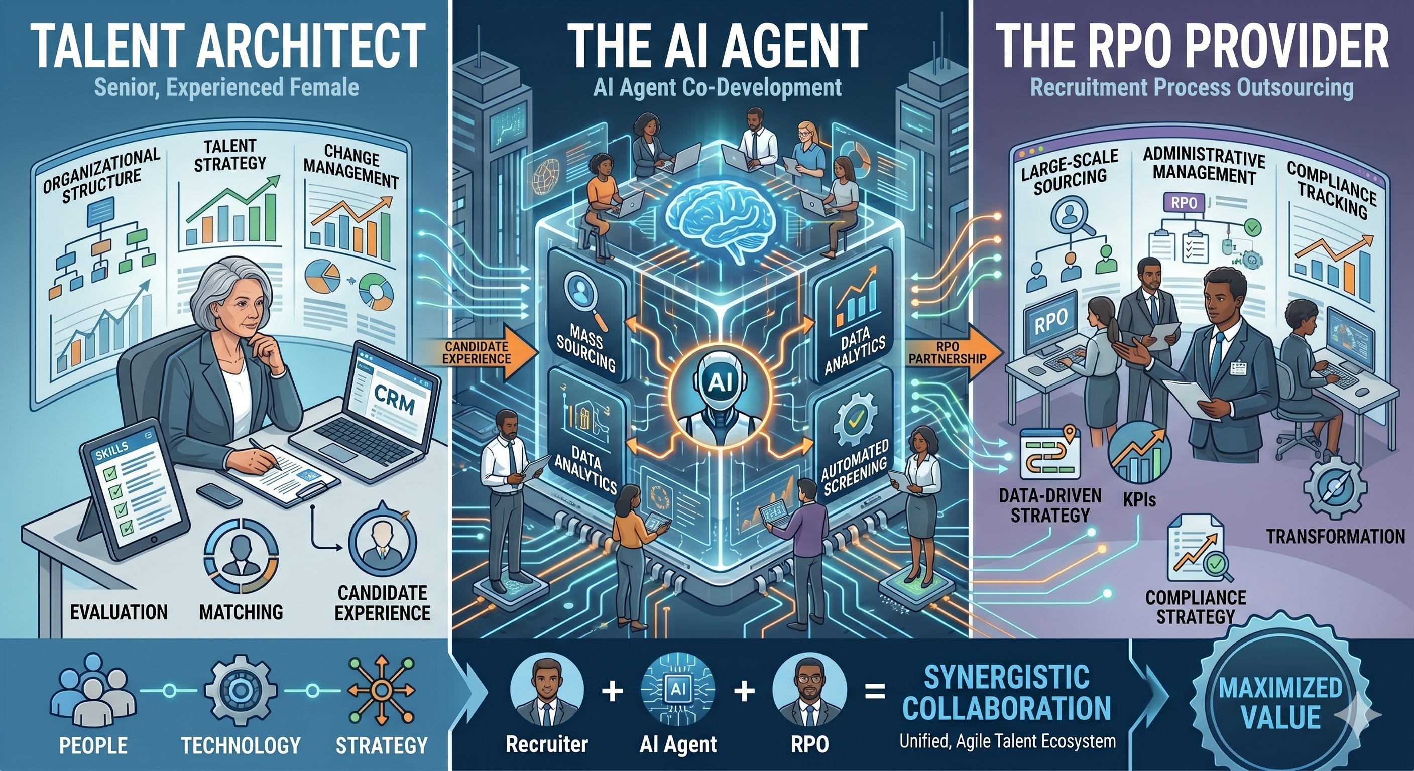 The Talent Architect sits above all three. They design the intake process. They set the quality bar. They manage the vendor relationships and the AI configurations. They own the data. They are accountable for outcomes.